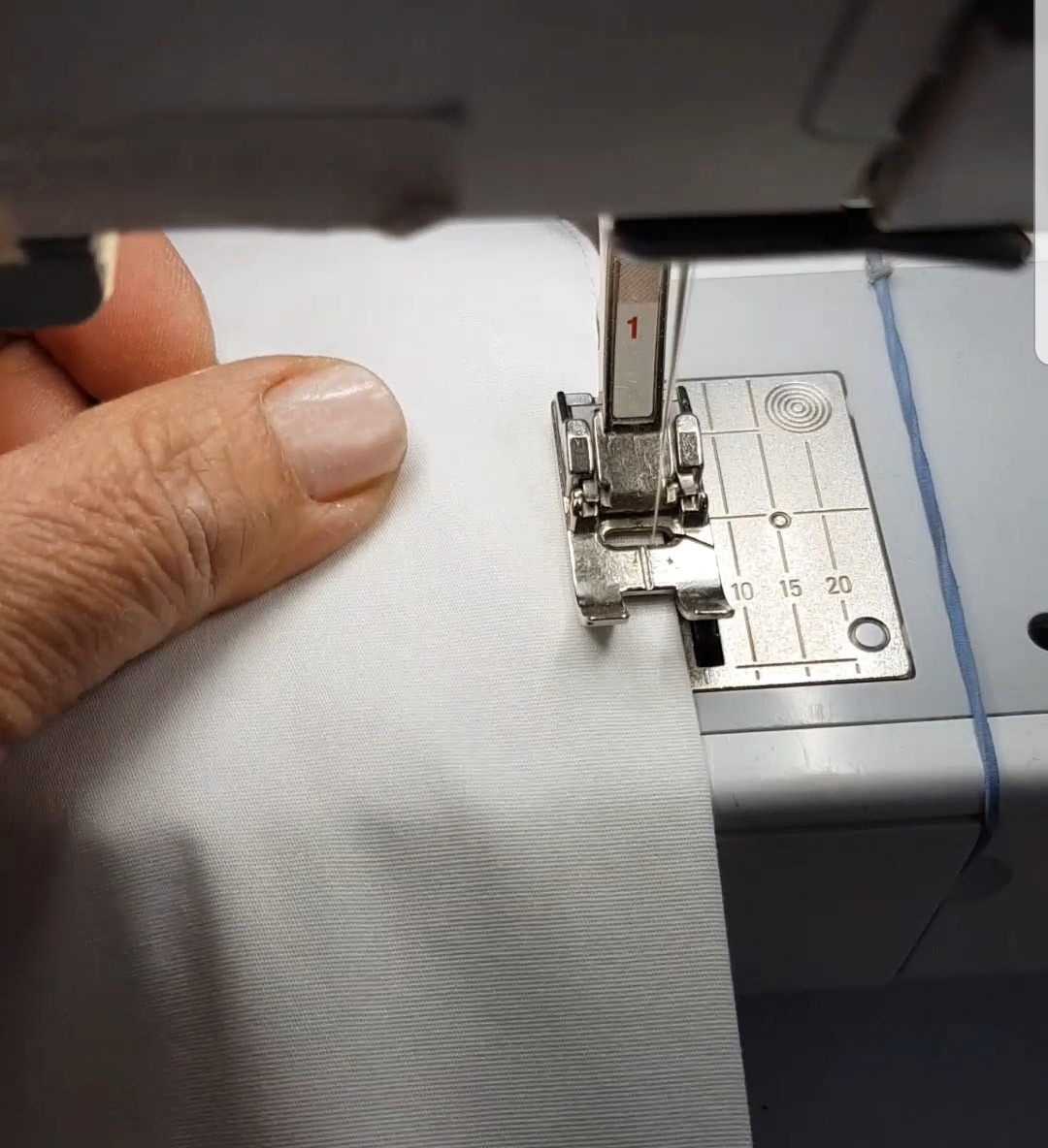 Biesen werden im geraden Fadenlauf genäht – das kann in Längs- oder Querrichtung sein. Bügle in Deinem Stoffstück die 1. Biese vor – also einfach einen Bug bügeln. Steppe die Biese mit Geradstich gleichmässig ab – in der von Dir gewünschten Breite. Je nach Biesenbreite orientiere Dich an den eingravierten Markierugen Deiner Nähmaschine. Ist die Biese nur sehr schmal – man nennt das auch Haarbiese – kannst Du – wenn möglich – die Nadel auch einfach verstellen, so dass Du Dich ganz bequem an der rechten Innenkante des Nähfüßchens orientieren kannst. Je nach Nähfüßchenmodell, mußt Du Dir andere Orientierungspunkte suchen. Es wäre auch möglich, die Nadel nach links zu versetzen und die mittige Kerbe als Blickpunkt, der an der Aussenkante langläuft, zu nehmen. Wenn Deine Nadel nicht verstellbar ist und sie somit immer mittig sitzt, hast Du vielleicht mehrere Einkerbungen am Nähfuß, an denen Du Dich orientieren kannst. Solltest Du z. B. einen Kantennähfuß besitzen und die Nadel hoffentlich verstellbar sein, ist es noch einfacher.