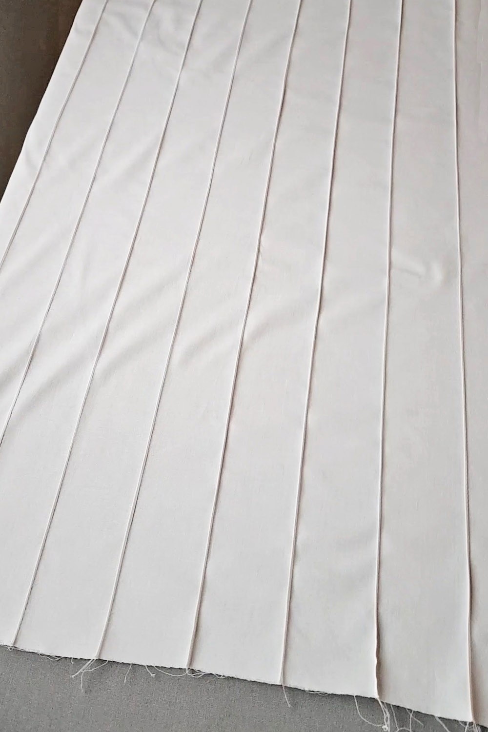 Am Bügelbrett markierst Du die 2. Biese, indem du den Abstand mit dem Maßband bestimmst. Bügle wieder eine gerade Kante exakt im Fadenlauf. Dann folgt Schriftt 1 usw. Eigentlich ganz einfach. Zeitaufwendig ja, aber das Ergebnis spricht für sich, meine ich.