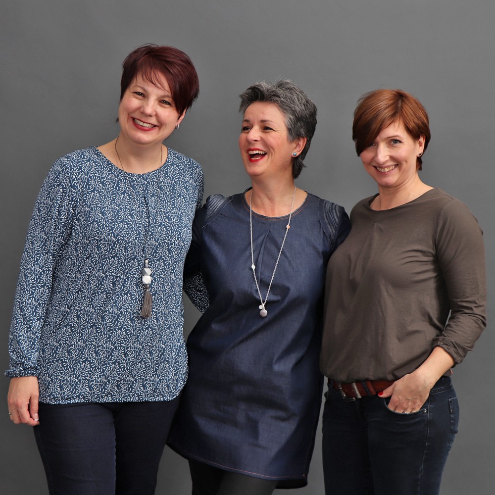 Das Blusenshirt kannst Du grundsätzlich aus allen Webwareblusenqualitäten, vorzugsweise mit fließendem Fall nähen, aber nicht nur das – auch Jersey ist möglich, gar kein Problem. Mein Probenähteam und ich haben das Blusenshirt aus ganz unterschiedlichen Materialien genäht, z. B. Double Gaze, Wildlederimitat, Seidenbatist, Viskose, Tencel, Baumwollpopeline und Jersey. Aber schau selbst und entdecke, wieviele Möglichkeiten bei der Materialwahl es gibt: