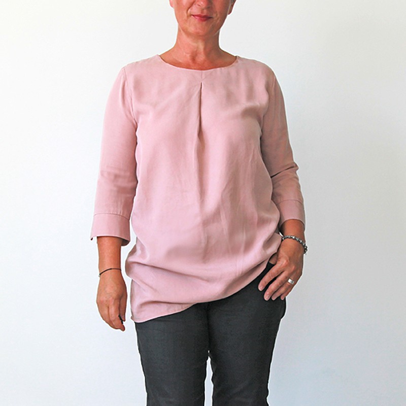 Blusenshirt in unterschiedlichen Größen, wahlweise mit 3/4 Arm und Manschette oder Langarm genäht: