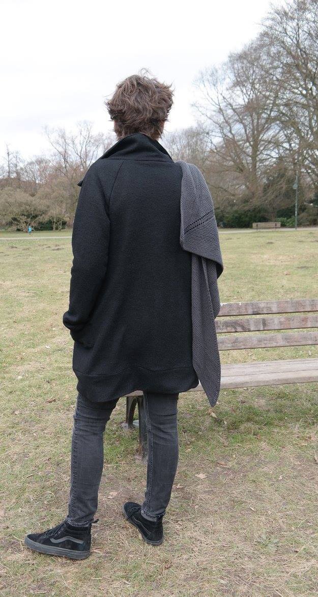 Zu dieser besonderen Jacke aus Wollwalk gibt es einen eigenen Blogartikel, in dem auch beschrieben wird, wie das Grobstrickbündchen angenäht wurde. Schau mal HIER!