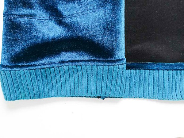 Bei den meisten Oberstoffen wird das Grobstrickbündchen rechts auf rechts an den Saum genäht. *Es ist aber wichtig, dass das Bündchen und der Oberstoff von der Dicke her zusammenpassen. Eine Nähprobe könnte da Gewissheit verschaffen, falls Du nicht sicher bist. Nur bei Walk gibt es noch eine 2. Möglichkeit. Doch zuerst bleiben wir bei der klassichen Methode: