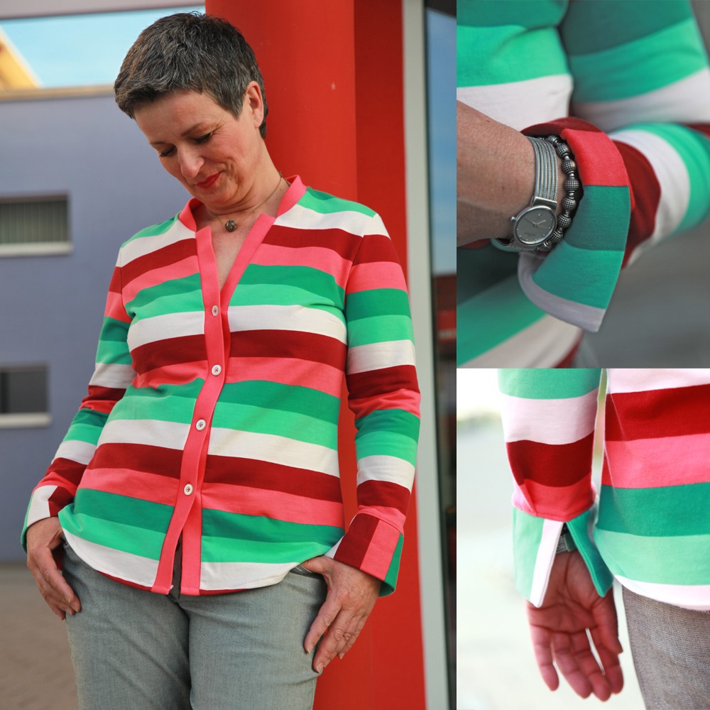 Der Schnitt ist für mich genau das richtige. Probleme hatte ich, wie immer bei den Ärmeln. Betone: wie immer. Inzwischen weiß ich was ich ändern muss und schon war die erste, die zweite, die dritte da. Nr. Vier ging an meine kritische Tochter. Das hat sich gelohnt und macht Spass, zumal Variationen, schon durch die Möglichkeit verschiedene Materialen zu nehmen zu können, ganz schnell da sind. Klasse!