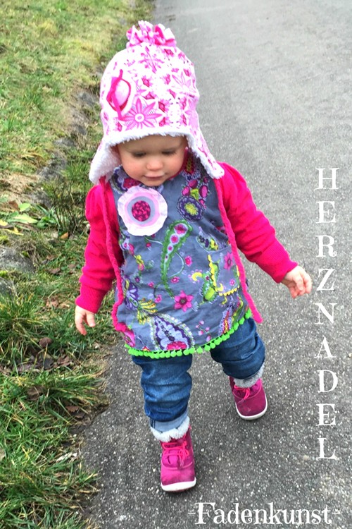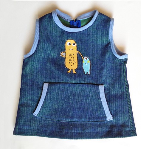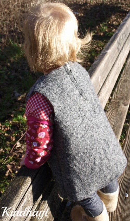 Für warme Kinderbäuche sorgt das Schnittmuster KINDERTUNIKA. Du kannst es aus Wollwalk oder anderen kuscheligen Qualitäten (Empfehlung: Feincord, Fleece, Nicki, Sweatshirtware) nähen. Ein simpler ärmelloser Schnitt in leichter A-Form bietet viel Bewegungsfreiheit und viele Gestaltungsmöglichkeiten.