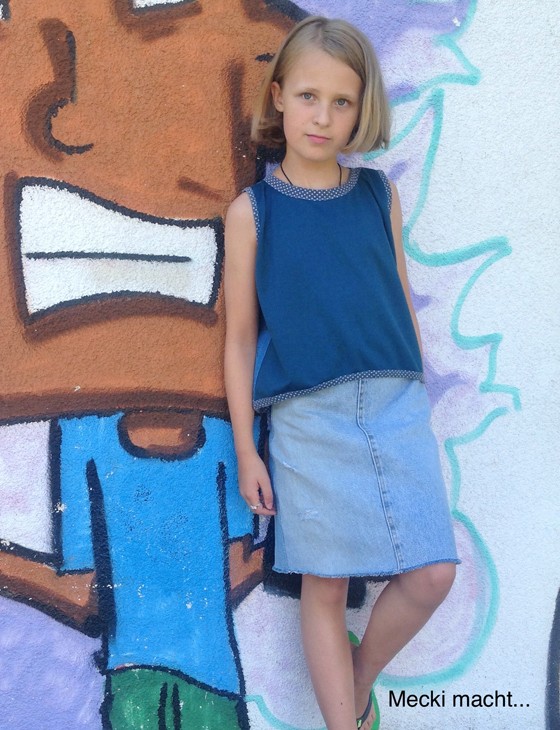 Ich bin sehr zufrieden mit dem Schnittmuster. Ich habe aus einer alten Jeans den Rock in 122 für meine Enkelin genäht und ein wenig abgewandelt.