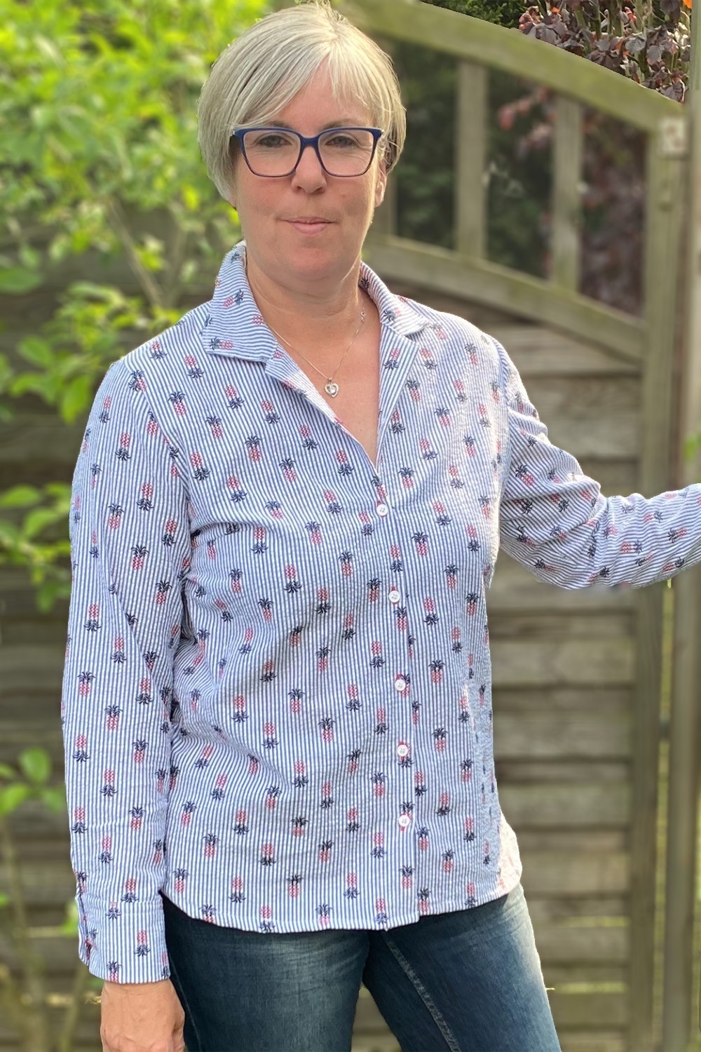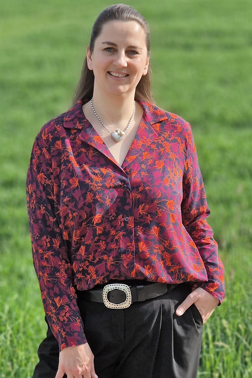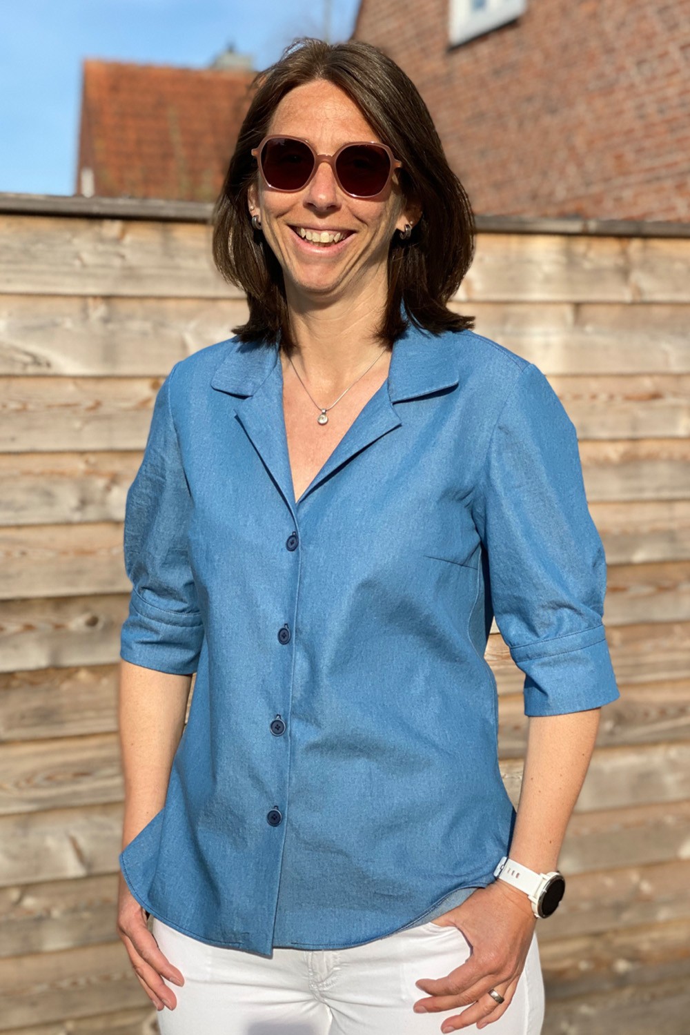 Ich habe die Bluse in Gr.44 genäht (Kurzarm, ohne Manschette). Die Anleitung ist super beschrieben. Kragen und auch Ärmel einsetzen – kein Problem. Da wird es sicherlich noch Folgemodelle geben