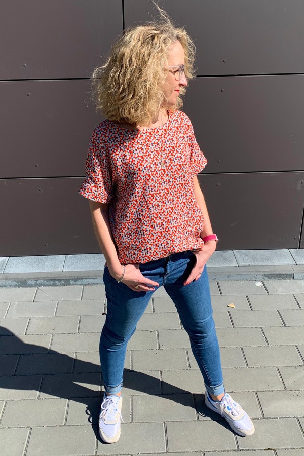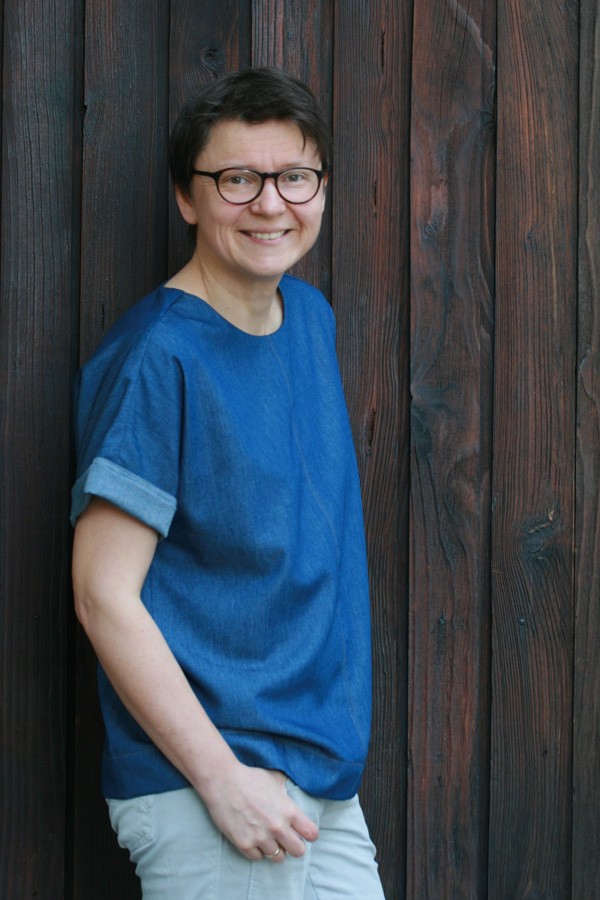 Tolles Schnittmuster, sehr gut erklärt. Ich hatte keine Schwierigkeiten. Ich habe jeweils ein Shirt aus Webware und das erste Mal eins aus Musselin genäht, beides tolle Ergebnisse. Beide Stoffe sind leicht gecrasht, deshalb habe ich mich für die Variante ohne Kellerfalte entschieden. Gefällt mir in diesem Fall von der Optik her besser. Ich habe den Bogenabschluss gewählt und das Shirt noch 5 cm verlängert. Das mache ich aber generell so, kurze Shirts sehen bei mir einfach nicht aus. Meine Kaufgröße ist M, hier habe ich Größe S genäht. Wer es also nicht ganz so oversized mag, dann eine Größe kleiner wählen. Passt perfekt. trotzdem noch schön luftig-locker. Solche Schnittmuster mag ich!