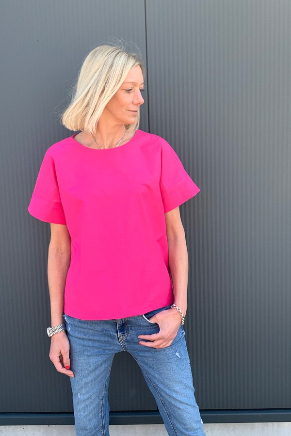 Schlicht, zeitlos mit einem Hauch Raffinesse durch die Faltenlösung (optional) in der vorderen Mitte besticht Blusentop Fleur_b. Mit der leicht oversized Schnittführung ist es zudem luftig und somit das ideale Kombiteil für die Frühjahr/Sommer Saison.