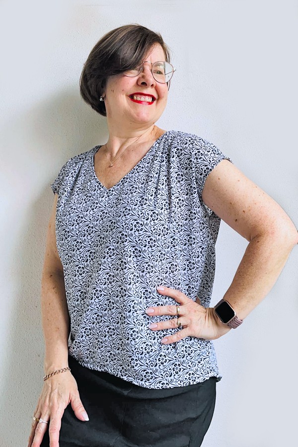 „Aus Viskose genäht ist dieses Schnittmuster für ein luftig weites Blusentop mein Favorit für die heißen Sommertage.“ Ingrid Berzsenyi-Paetzel Gründerin von B-patterns