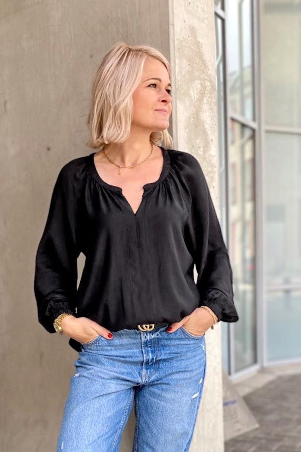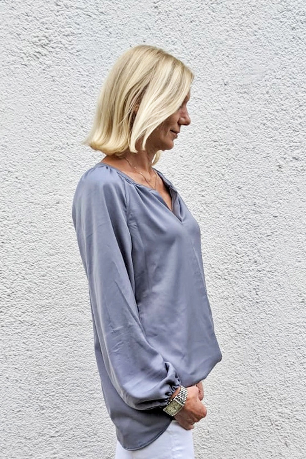 Ach was sind wir verliebt – eine Bohobluse mit extraschönem Halsausschnitt, zarten Kräuselfältchen und blusigem Ärmel in 3 wählbaren Längen.