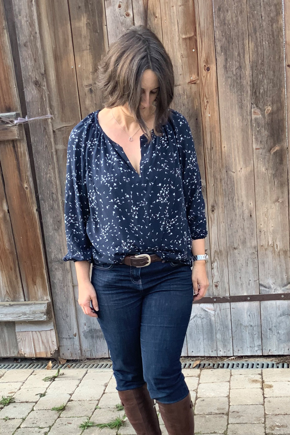 Toller und doch relativ unkomplizierter Schnitt und alles hervorragend erklärt. Super ist auch, dass man die Größen individuell ausdrucken kann und dass es verschiedene Variationsmöglichkeiten gibt. Die erste Bluse ist so schön geworden, dass ich gleich noch eine zweite genäht habe … Absolut empfehlenswert!