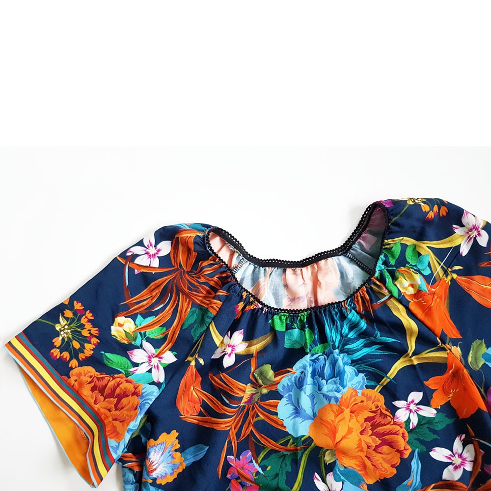 Du kannst das Blusenshirt in folgenden Stoffen nähen: Feine bis mittelschwere vorzugsweise fließende Stoffe wie z.B. Crepe, Mousseline, Satin, Batist, Double Gauze aus Tencel, Viskose oder Baumwolle.