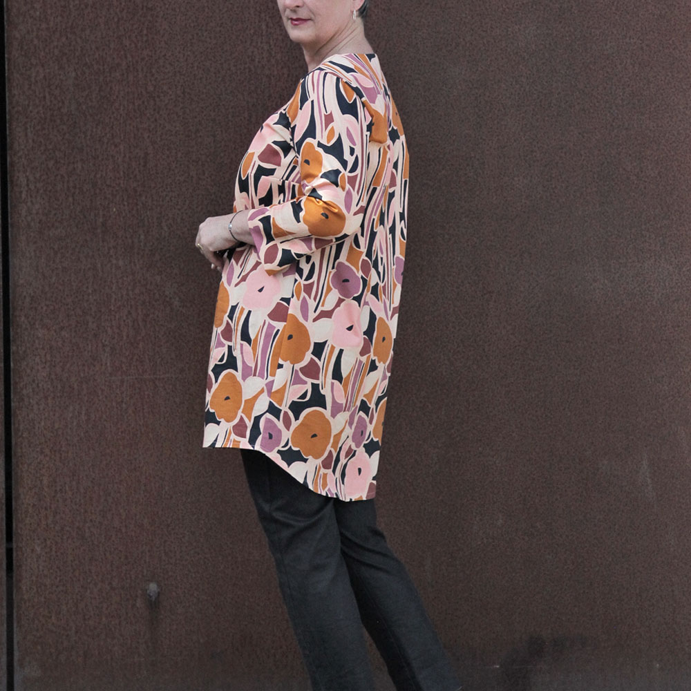 Ich habe die Bluse mit einem hellen Leinenstoff in der langen Version genäht und mich sehr über das Ergebnis gefreut. In meiner Größe haben alle Angaben auf Anhieb gepasst. Der nächste Stoff liegt schon parat, um die Bluse noch einmal – vielleicht als Kursbluse – zu nähen. Eine gut verständliche Anleitung und ein schöner Schnitt, den ich sicher noch öfter verwenden kann.