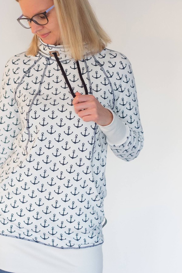 Ein Hoodie Schnittmuster für Damen, dass nicht sackig ist und trotzdem bequem und  4 verschiedene Kragenlösungen anbietet, das ist das Besondere an meinem Schnittmuster Hoodie Kaja_B.