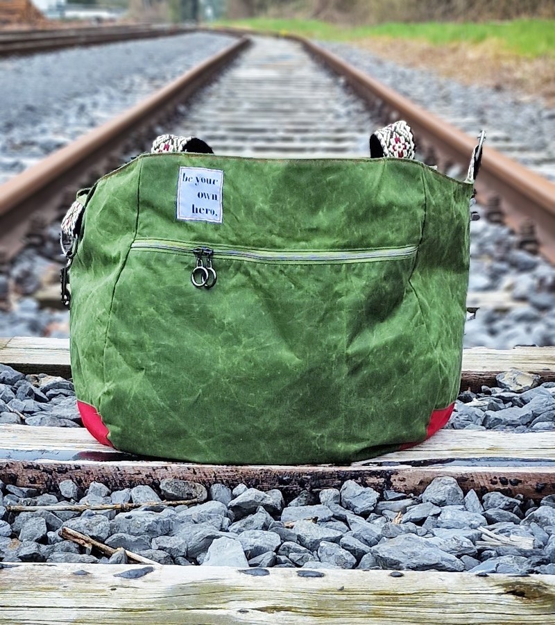 Die Tasche ist absolut perfekt. Durchdacht, mit praktischen Details. Anleitung sehr gut verständlich. Genäht habe ich sie aus Heavy Oilskin und einer beschichteten, dünnen, mit Vlies verstärkten Baumwolle innen.