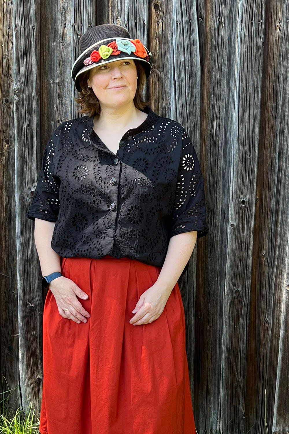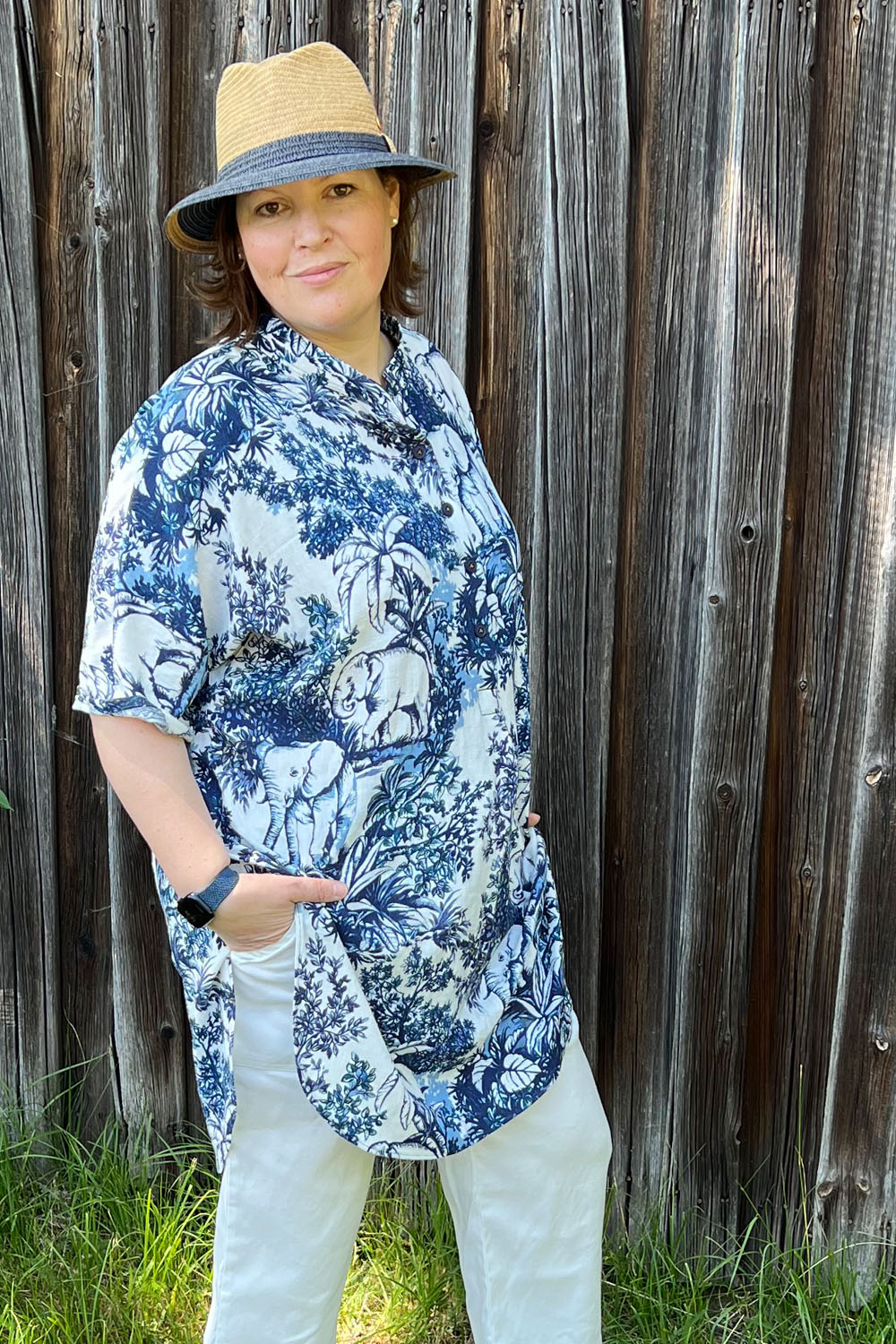 Leider habe ich einen „Double Gauze“, den ich vergangenes Jahr gekauft hatte, gewählt; das hat vermutlich die Umsetzung etwas erschwert (für mich als Autodidaktin), obwohl es sich wirklich gut trägt.